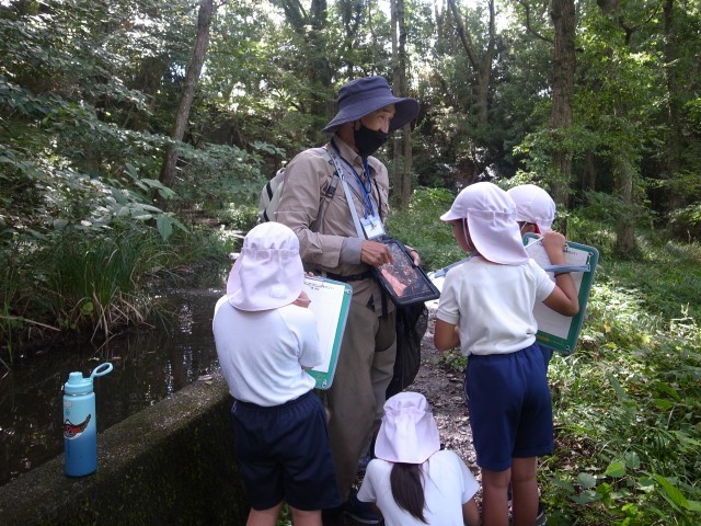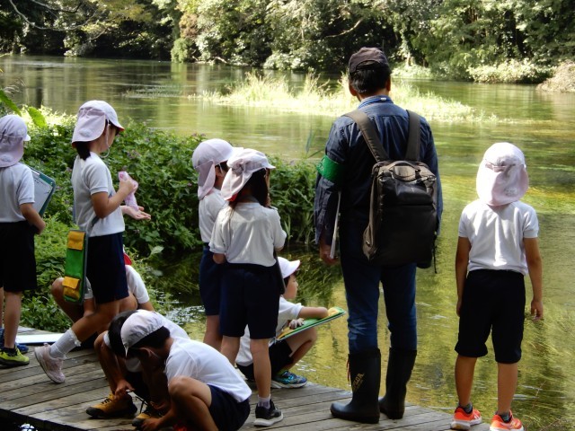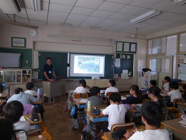 3年生は総合的な学習の時間で「柿田川博士になろう」をテーマに、柿田川についての探究学習をしています。10月2日に柿田川みどりのトラストの皆さんがゲストティーチャーとして、柿田川の様々な秘密を教えてくれました。ここまで子供たちが柿田川で調べて感じた疑問に丁寧に答えてくださり、子供たちはさらに疑問を見つけて探究を深めました。また、スライドを使った湧き水の説明や、柿田川の生き物についての学習は、とてもわかりやすく、子供たちもたくさんメモをしていました。「沢ガニの色は、食べ物や環境で変わると言われているが、柿田川には赤、白、青と複数の色の沢ガニが共生している。」といったたいへん興味深い話が聞けました。柿田川みどりのトラストの皆さん本当にありがとうございました。