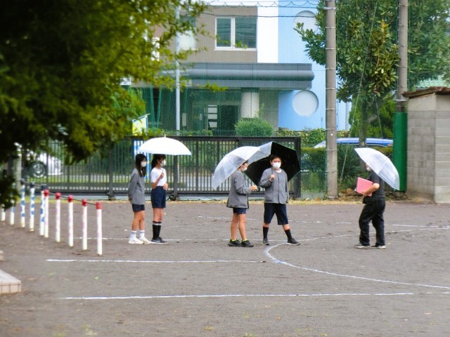 10月25日(土)に開催する運動会に向けて、準備が大詰めとなりました。木曜日には、プログラムが円滑に進められるように6年生が各係の打合せを行いました。外はあいにくの小雨でしたが、それでも傘をさしながら確認している姿も見られました。6年生の当日の活躍にも御期待ください。