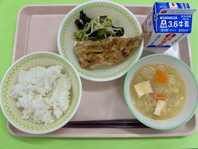 さっぱりした酢の物で疲労回復、気温も上がり汗をかいた後の身体には塩分補給にもなる味噌汁が染みたのではないでしょうか。