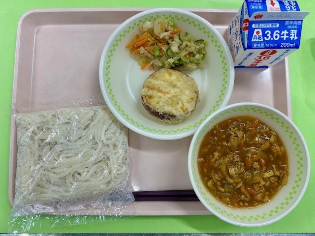 今日はカレー南蛮でした。じっくり炒めた野菜ととろ~りとしたあんが麺にからみ、とてもおいしく仕上がりました。