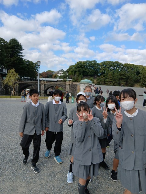 皇居二重橋を見学しました。国賓や大使を皇居に迎える馬車の訓練を見ることができました。
