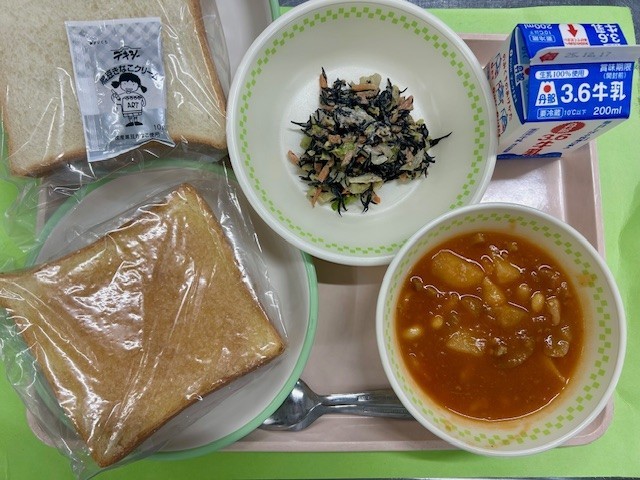 今日はシナモントーストを焼きました。シナモンが苦手な子もいるかな?と思い、量は控えめにしましたが、焼いている最中から給食室はシナモンのよい香りが漂っていました。