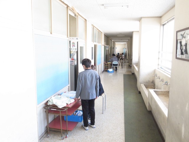 廊下では、「学校生活のあらわれ(通信票)」が手渡されています。ひとりひとり、先生から励ましの言葉をかけられながら、自分の歩みを確かめていました。