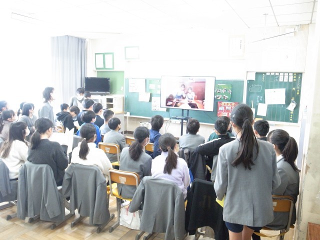 教室では、修学旅行の思い出の写真をスライドで鑑賞し、盛り上がっていました。