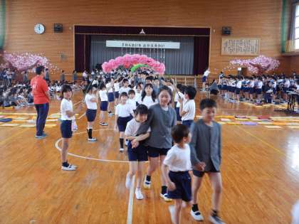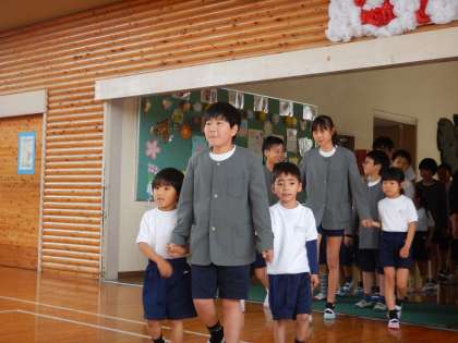 4月23日(火)に1年生を迎える会が行われました。6年生とともに入退場しました。
