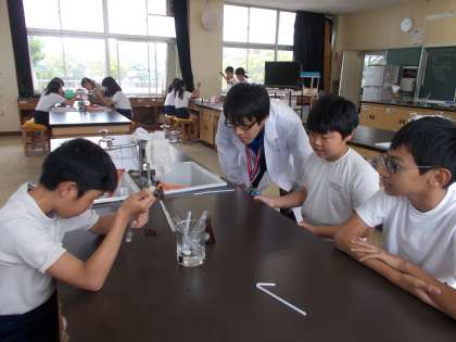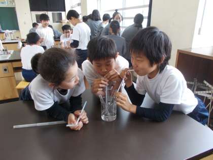 理科の時間(6年生) 公開日 2019/05/09 更新日 2019/05/09 子供たちの姿 「消化の働き」を調べる実験を行っていました。 自分のだ液を試験管に入れて、だ液がでんぷんを変化させるか調べていました。ヨウ素液を入れたら紫色になることなど確認し、なぜ?どうして?の実験の楽しさを学べていました。 いいね(0)