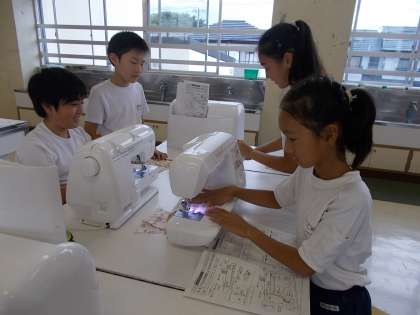 ミシンに挑戦していました。まずは布きれで練習です。糸を通してゆっくり塗っていました。直線縫いから返し縫いをし、さらにアレンジして三角や四角など斜めに塗ってみたりしていました。ランチョンマットを作る予定だそうです。楽しみですね。