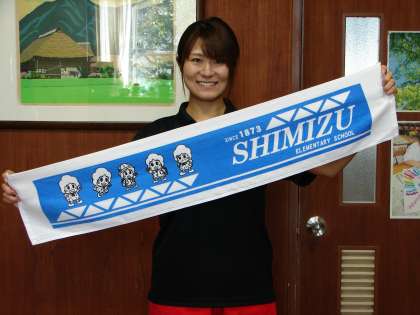 さわやかな水色と白の配色で、くすたんのイラストが入ったオリジナルのタオルができました!