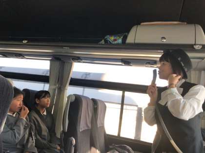 都内に入り、バスガイドさんから都内案内をしていただいています!