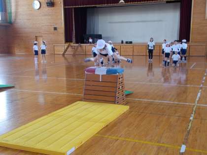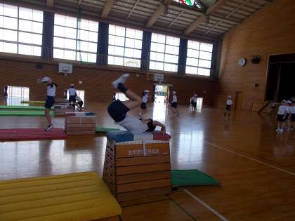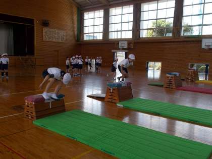 手のつき方、跳んだ後の姿勢もオリンピック選手のように決めポーズをして最後の着地もしっかり止まるまで意識をするように取り組んでいました。