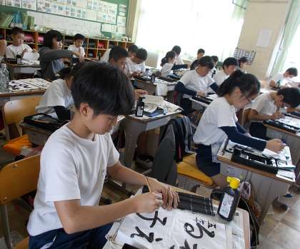 半紙を四つ折りにし、字配りと配列に気をつけていました。