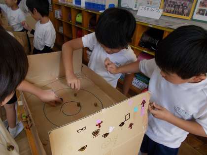 めいろやこま、的あてなどのゲームは「やってみたい!」と大人気。みんな楽しそうに行っていました。