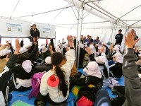 状況にあった言葉遣いを考えよう!という授業を行っていました。日本語ではどんな言葉が相手とのよい関係を作るのかを考え、外国語でも「心をつなぐ言葉」を大切にすることを学んでいました。