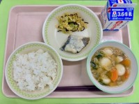 ごはん、ぎゅうにゅう、はっぽうさい、だいずといものあげがらめ