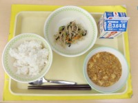 ロールパン 牛乳 ミートボール ツナとオニオンのソテー お豆のシチュー