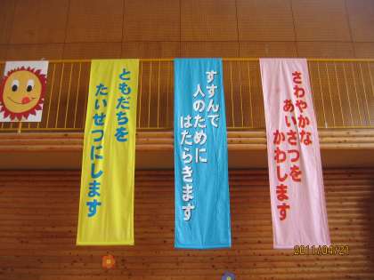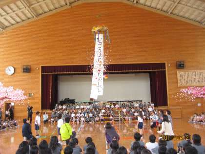 4.21(木)に1年生を迎える会を行いました。6年生のお兄さんお姉さんと一緒にかわいい1年生が入場し、各学年からの出し物のプレゼント発表を食い入るように見つめていました。みんなの気持ちがポカポカするような楽しい会になりました。