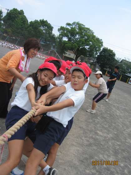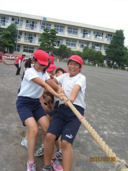 運動会で延期になっていた3色対抗つなひきをスマッピー遊びで行いました。