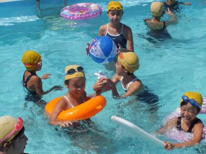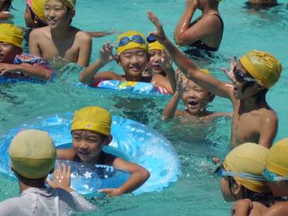 6年生のお兄さんお姉さんが一緒にいてくれるので、小さな1年生も大プールに入ることができました。思い出に残るプール納めになりました。