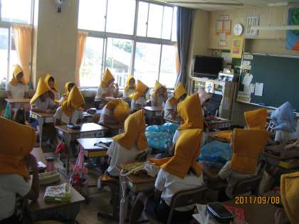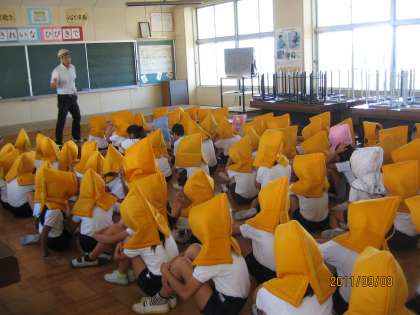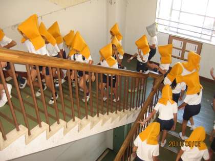9/8(木)に、津波を想定した避難訓練をしました。1次避難のあと、2次避難で3階に避難しました。