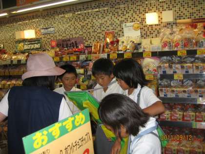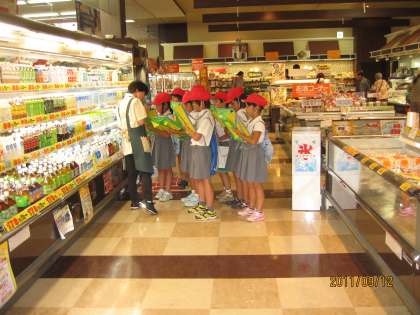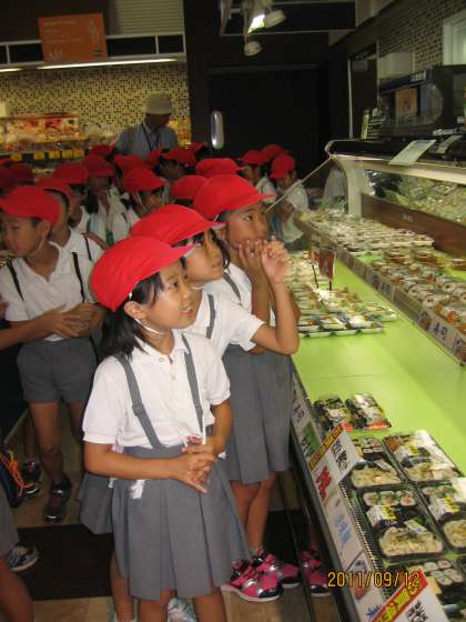 9/12(月)、社会科の勉強でスーパーマーケットの見学をしました。キミサワせせらぎパーク三好店に行き、お店の中やバックヤードの中を見せていただきました。子どもたちは、店長さんの話をしっかりと聞き、ノートにメモしました。