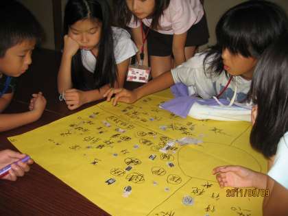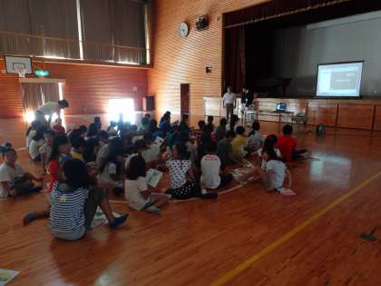 9/8(木)〜10(土)まで、福祉センターで「くすのき合宿」を行いました。4年生から6年生までの53人が参加して、一緒に勉強をしたり、レクリエーションをしたりして楽しく過ごしました。最終日は防災講座を開いたあと、みんなで流しそうめんを楽しみました。
