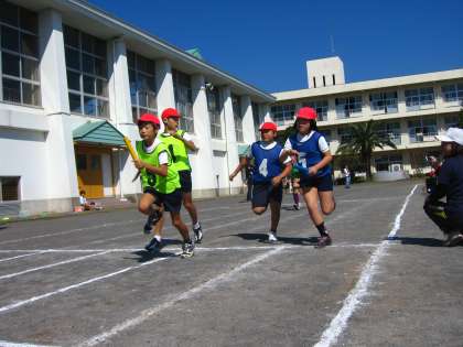 子どもたちは朝昼にたくさん練習してきました。本番では運動会のときよりもバトンパスが上手になり、クラス記録を更新したクラスが多かったです。