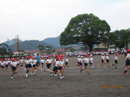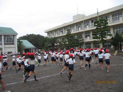 12月の持久走大会に向けて、朝の運動で5分間走が始まりました。低中高の3コースに分かれて、5分間走り続け、自分が走れる距離を知り、目標を持つことができました。