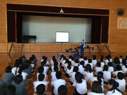 5月10日(火)に、交通教室がひらかれました。グラウンドを使用できなかったため、体育館で交通指導員さんからお話を聞きました。指導員さんからは「どうしたら交通事故から自分の身を守れるか」について具体的なお話がありました。自転車の正しい乗り方についての知識を深めました。