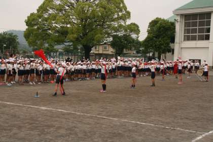 朝の運動会練習は、応援練習でした。 赤組応援団の指導で、力の入った応援ができました。