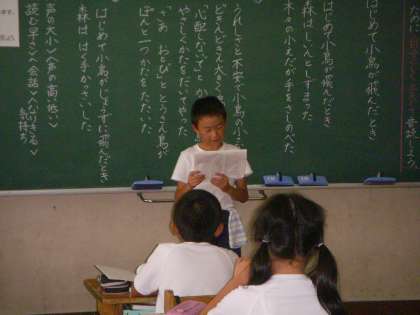 金曜日の5時間目、4年3組では国語で「はじめて小鳥がとんだとき」を学習しました。声の大きさや読む早さ、なりきる等の工夫をして、音読をしました。友達の発表を聞いて、すごい!上手!と声があがっていました。