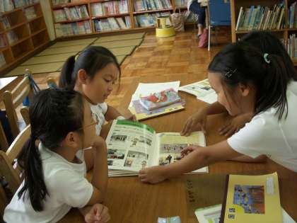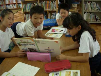 学習の最後に、図書館でバリアフリーに関係する本を見ました。子どもたちは「これ見たことある!」「こんなこともそうなんだ。」と興味関心を深めていました。