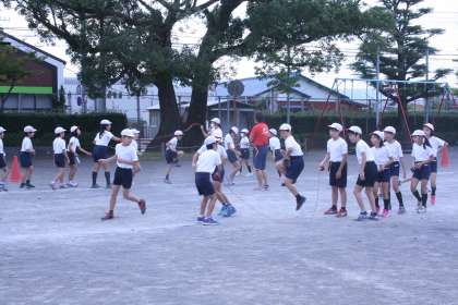 今日の朝運動は、長縄跳びです。