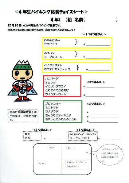 また、12月にはバイキング給食も予定されています。事前に栄養に関する指導も行いました。メニューも子どもたちが選び、今から期待が高まっています。