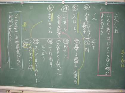 ごんぎつねの学習が進んでいます。先日は、ごんと兵十の人物像について考えました。この一人と一匹は、共通点もあるのですが、性格の部分で違いが見られます。