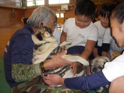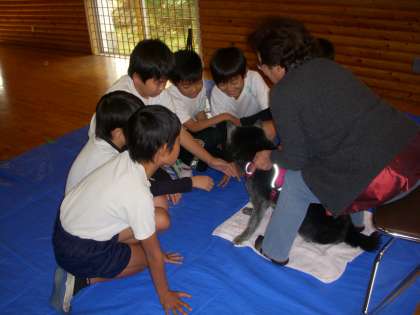 12月8日(木)に動物愛護教室がありました。犬の心音を聞いてみたり、実際にふれあったりすることで、動物愛護の気持ちや犬との接し方などを学びました。犬たちとふれあう中でたくさんの笑顔が見られました。