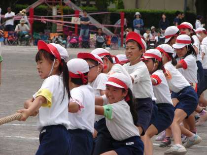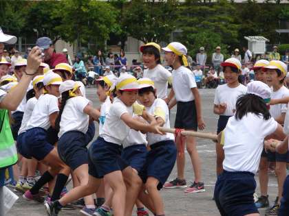 6年生団競の様子 公開日 2018/05/26 更新日 2018/05/26 子供たちの姿 源平合戦〜屋島の戦い〜は綱引きでした。学級ごとの総当たり戦で、引いた距離(1m1ポイント)で勝敗が決まります。4組が2組を8mも引いて、担任も呆然としていました。 いいね(0)