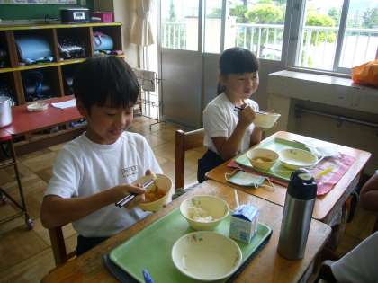 6月5日(火)の給食 公開日 2018/06/06 更新日 2018/06/06 今日の給食 麦ご飯 牛乳 肉じゃが 焼き木の葉揚げ 小松菜と油揚げの煮浸し *3年3組は今日も食缶が空っぽでした!毎日調理員さんへの感謝の気持ちが伝わってきます。良い姿勢で、食器を持って食べる姿は美しいですね。 いいね(0)