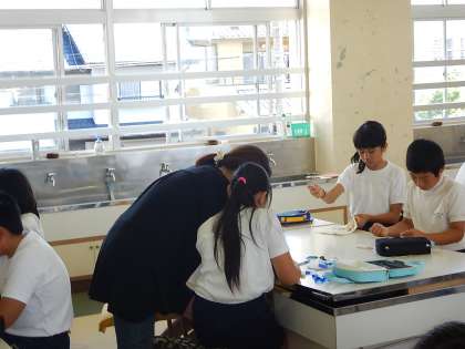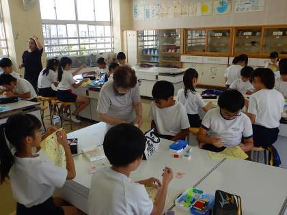 5年生は、ソーイングの学習がスタートしました。初めてのことで戸惑っている様子も見られましたが、ボランティアの方々の御指導を受けながら「玉結び」「玉どめ」が上手にできるようになってきました。次回から、「なみ縫い」など縫い方の学習が始まります。