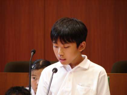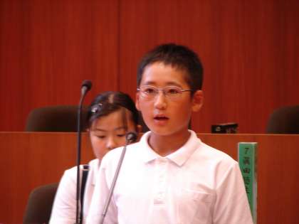 その2 公開日 2018/08/01 更新日 2018/08/01 子供たちの姿 4人それぞれが質問をし、担当する課の参事や課長補佐が答弁をしてくださいました。 その答弁に対して感謝の言葉と自分の思いを述べます。誰もしっかりとしています。 最後に子ども議員からのあいさつを、清水小の子どもが述べました。 いいね(0)
