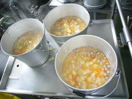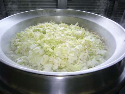 *「フランクポトフ」には野菜がたっぷり入ります。キャベツを加えると、釜の中でこんもりとした状態になります。じっくり煮込んでいくと野菜がクタッとなり、旨味を吸い込んでおいしくなります。