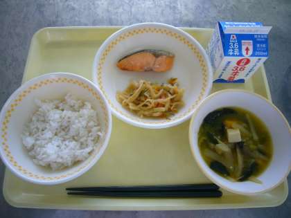 10月2日(火)の給食 公開日 2018/10/03 更新日 2018/10/03 今日の給食 麦ご飯 牛乳 焼き塩鮭 切り干し大根の煮物 いろいろ野菜の味噌汁 *清水小では、味噌汁や煮物に「さば節」でとっただしを使っています。和食の献立の日は給食室にだしの香りが広がります。 水で戻した切り干し大根を、だしと砂糖や醤油などの調味料でじっくり煮含めます。 いいね(0)