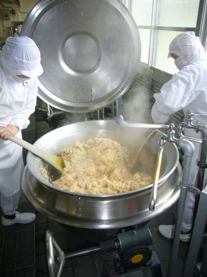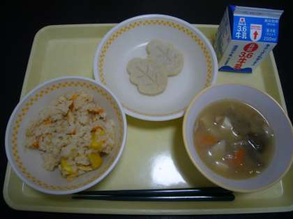 10月16日(火)の給食 公開日 2018/10/23 更新日 2018/10/23 今日の給食 《自校炊飯》 栗の炊き込みご飯 牛乳 焼き白木の葉揚げ 豚汁 今月から月に1回、学校の釜を使ってご飯を炊く「自校炊飯」を実施します。 今日は秋の味覚たっぷりの「栗の炊き込みご飯」でした。 家庭での炊飯器を使う作り方と違うため、芯米にならないように、べちゃべちゃにならないように…と調理員さんが火加減などを工夫して炊きました。 いいね(0)