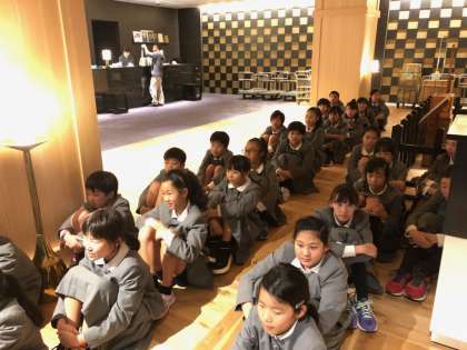 子供たちは、一流ホテルで一流の待機をしています。5分前行動が素晴らしい。