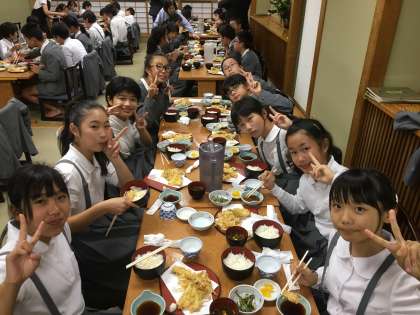 三定に到着。天ぷらのいいにおいが店を包んでいます。 天ぷらに舌鼓です。