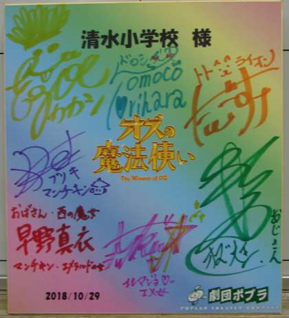 劇団ポプラの皆さんが色紙をプレゼントしてくださいました。廊下に掲示しようと思います。