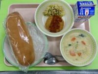 12月3日(水)・ロールパン・牛乳・海老芋コロッケ・キャベツとツナのソテー・白菜...