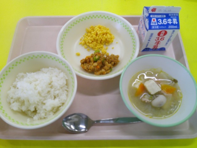 <献立>・ごはん・牛乳・きびなごのフライ・ひじきと大豆の炒め煮・玉ねぎと豆腐のみそ汁※写真は1年生の盛り付け量の目安です今日は、和食の給食です。きびなごのフライは、カリカリ食感に仕上がり、程よい塩気で...