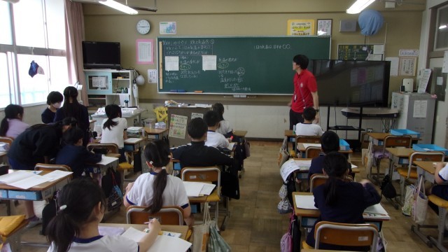 1校時の授業は、どちらのクラスも算数です。1組では、教科書「まなびをいかそう」のページの練習問題を解きました。「かけ算のきまり(例:交換のきまり)」を使って、いろいろな方法で答えを求めました。2組では...
