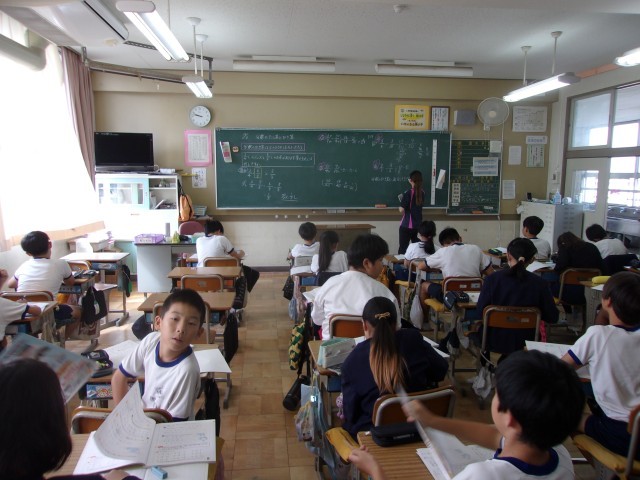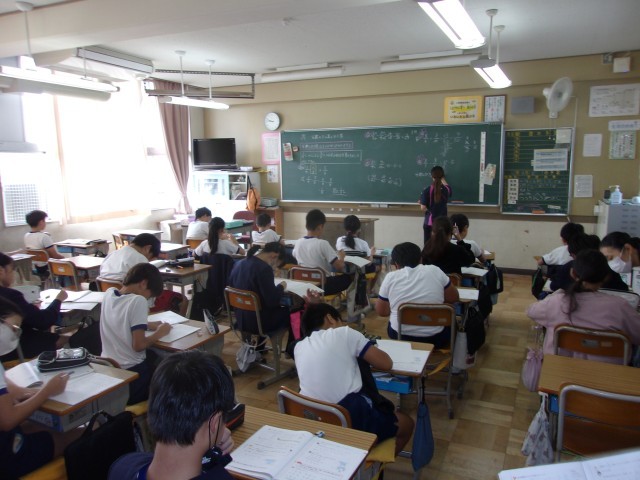 2校時の授業は、1組が道徳、2組が算数です。道徳では、「二億人を救った化学者」という資料を読みました。体内から寄生虫がいなくなる「イベルメクチン」を開発した大村 智さんの生き方についてみんなで考えました。新たな発見や開発には多くの時間や費用がかかります。どうして大村さんはそれができたのか、意見を出し合いました。算数では「分数のたし算とひき算」を学習しています。「3/4Lのジュースと5/8Lのお茶を比べると、量の違いは何Lかな?」という課題について考えました。分数のひき算は、通分してから計算することを学びました。