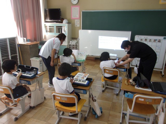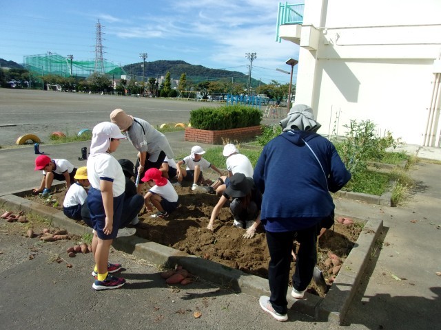 2校時の授業は、いずみ1が生単「サツマイモを育てよう」、いずみ2が音楽「歌・合奏」、いずみ3が国語「本を借りよう/文の組み立て」です。生単では畑に行ってイモの収穫をしました。音楽ではけんばんハーモニカで「ひのまる」を演奏しました。国語では修飾語について学習しました。